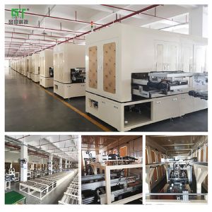 中涂固化-冷卻-面涂(UV)-流平-IR預(yù)熱(PU/橡膠漆固化)-UV光固-冷卻下件